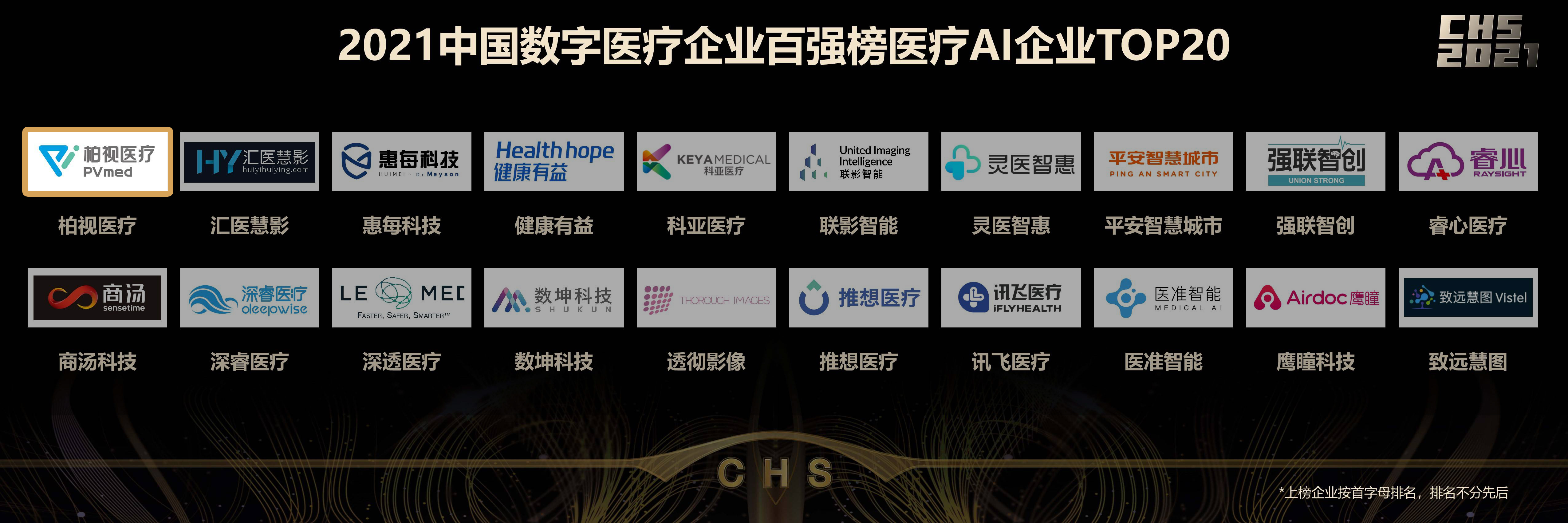 CHS 2021|| 柏視醫(yī)療喜獲2021中國(guó)數(shù)字醫(yī)療企業(yè)百強(qiáng)榜醫(yī)療AI企業(yè)TOP20